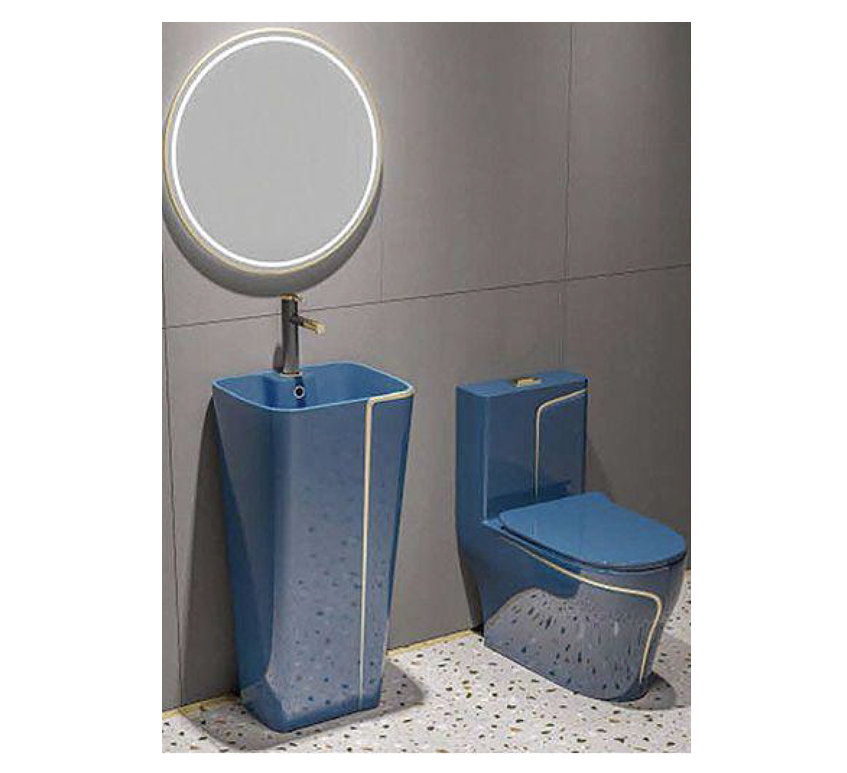 Bộ bồn cầu 1 khối ST-1029BGL1 + chậu rửa SSB-301BGL1 màu xanh dương viền vàng nổi bật