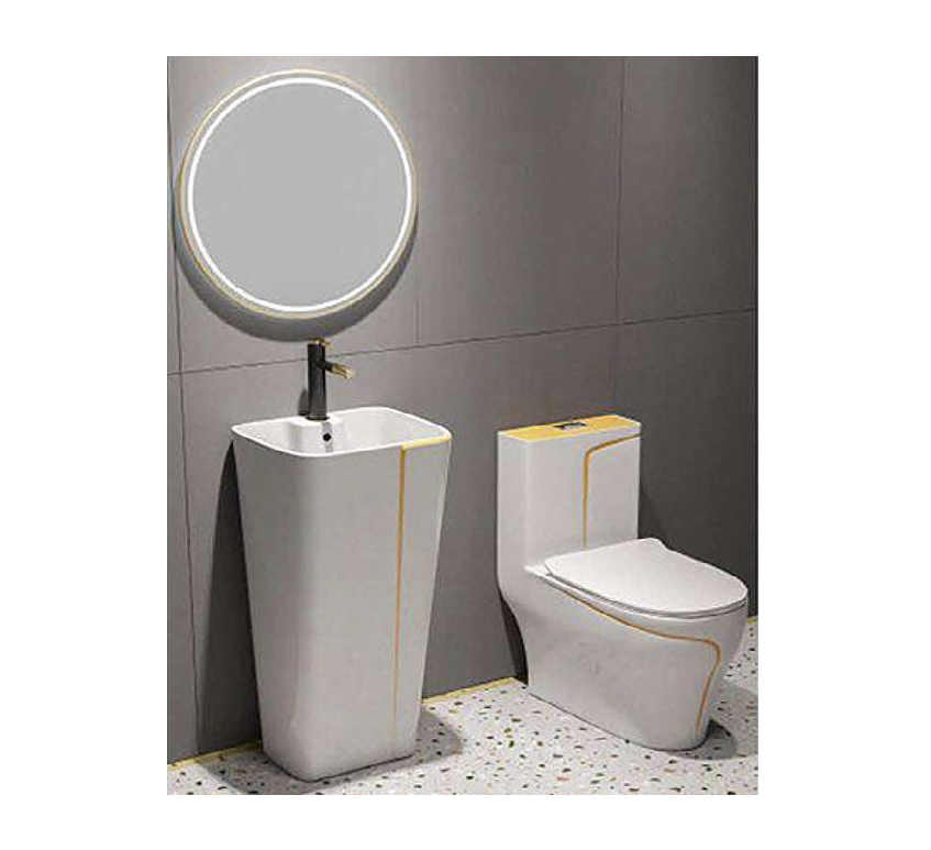Bộ bồn cầu 1 khối ST-1029WGL + chậu rửa SSB-301WGL trắng viền vàng cao cấp