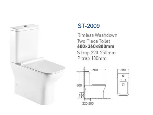 Bồn cầu hai khối ST-2009 – Công nghệ Rimless Washdown, dễ vệ sinh, xả mạnh