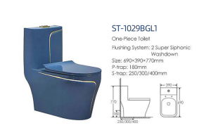 Bồn cầu nguyên khối ST-1029BGL1 Castel Việt Nam – xanh đậm viền vàng