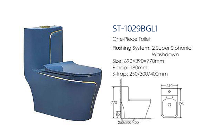 Bồn cầu nguyên khối ST-1029MBGL1 Castel Việt Nam – màu xanh đậm viền vàng