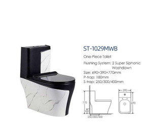 Bồn cầu nguyên khối ST-1029MWB Castel Việt Nam – trắng vân đá đen